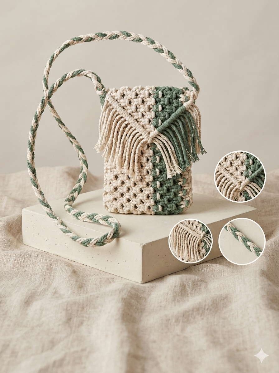 Intricate Braided Strap: Equipped with a sturdy, custom-braided two-tone strap designed for comfortable crossbody wear.